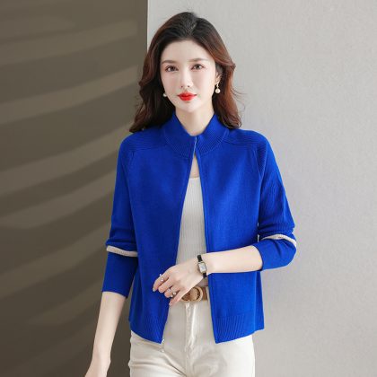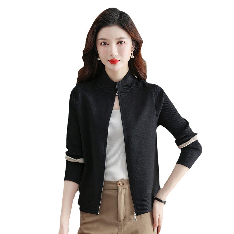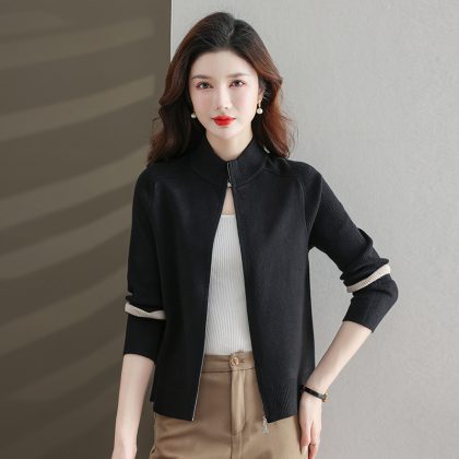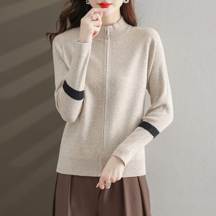 | nameOriginal | Outwear Fashion Women's Vertical Collar Sweater Autumn Contrast Color Sweater Zipper Coat Loose plus size Knitted Cardigan for Hair |