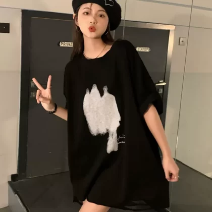 كبير الحجم ، قميص رفيع وقصير قصير.
