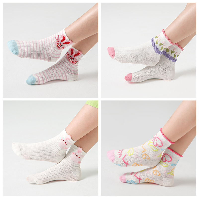 nameOriginal | P01 children's socks wholesale 2024 spring and summer rainbow summer mesh socks cotton thin cute boneless girls socks |