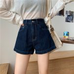 Paired with high-waisted dark blue wide-leg size 25 denim shorts