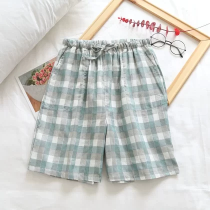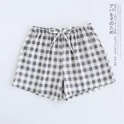 | nameOriginal | Pajama shorts for men and women, summer Japanese style plaid five-point pants that can be worn outside, loose, large size, couple home pants, large pants |