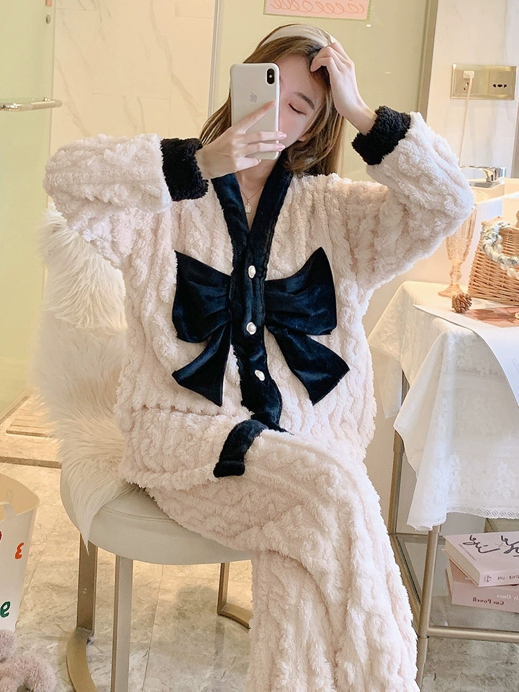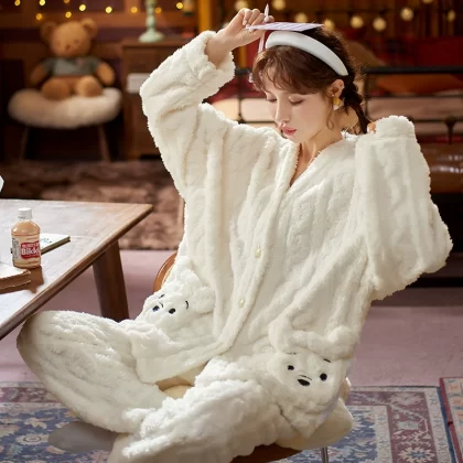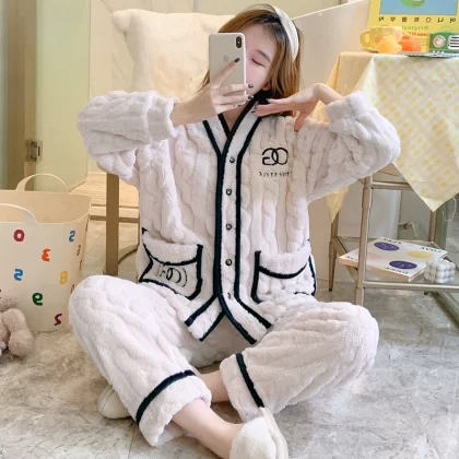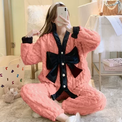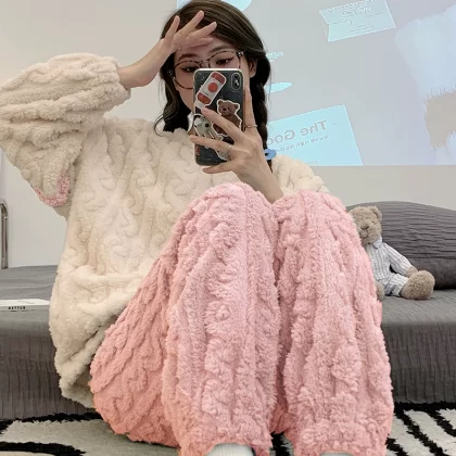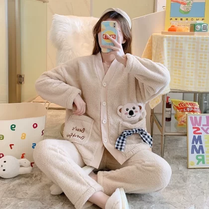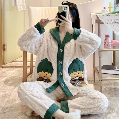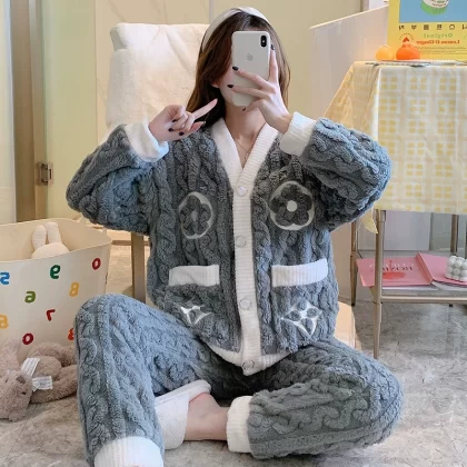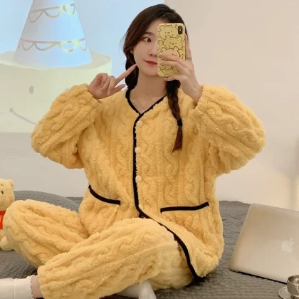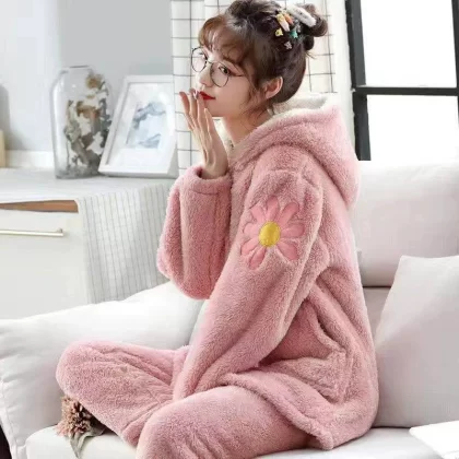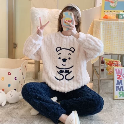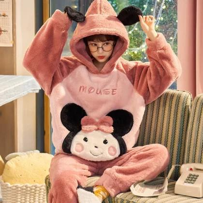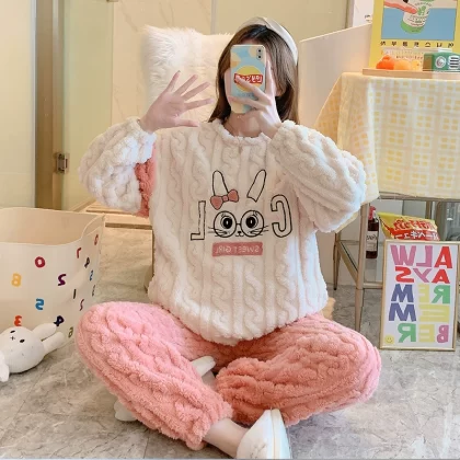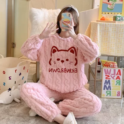 | nameOriginal | Pajamas autumn and winter women's coral velvet thickened plus velvet warm and cute 2024 new flannel home clothes winter |