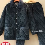 nameOriginal | Pajamas for men in winter plus velvet and thickened three-layer quilted ultra-thick coral velvet winter middle-aged and elderly father's home clothes |