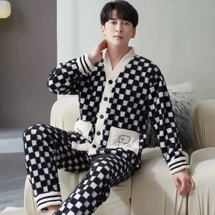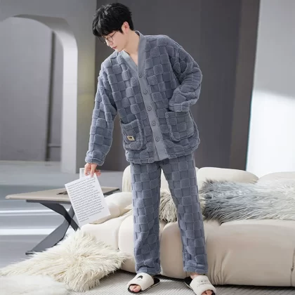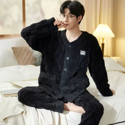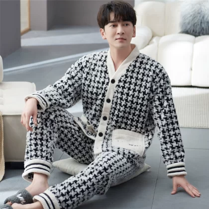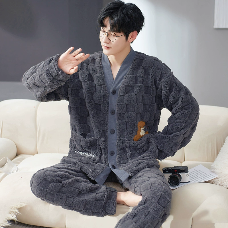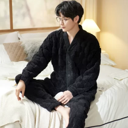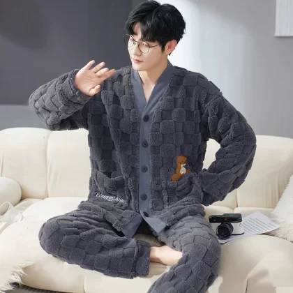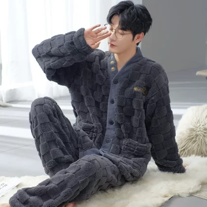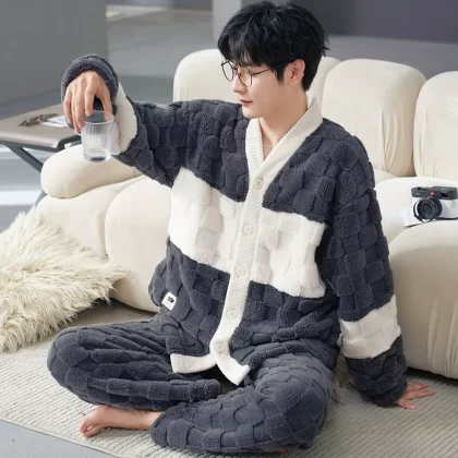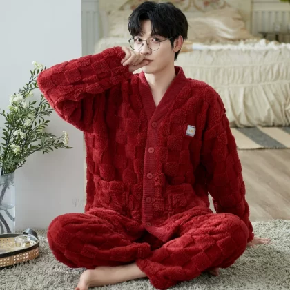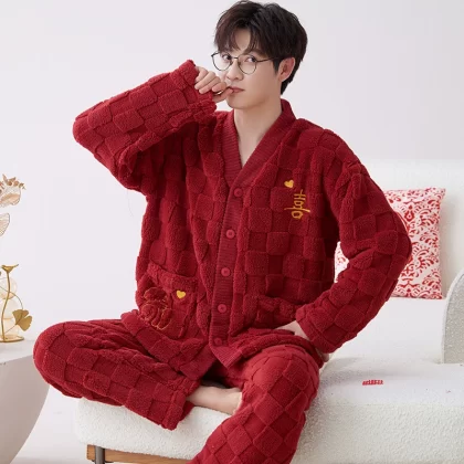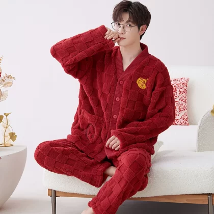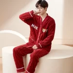 بيجامة رجالي شتوي رجالي مخمل مرجاني سميك خريفي وشتوي احمر سنة ميمونة ملابس منزلية شتاء