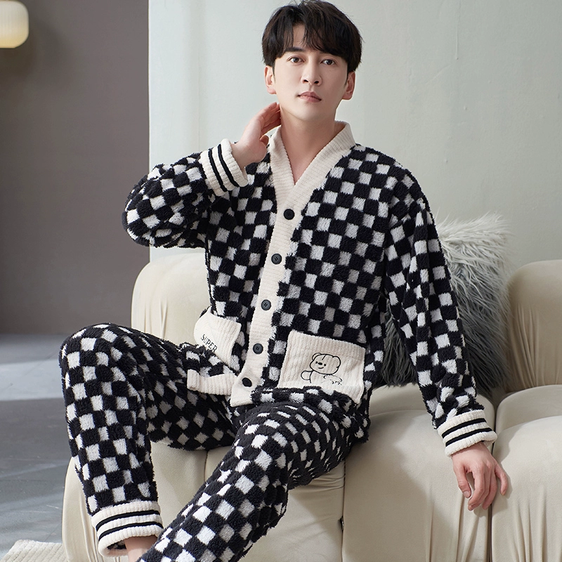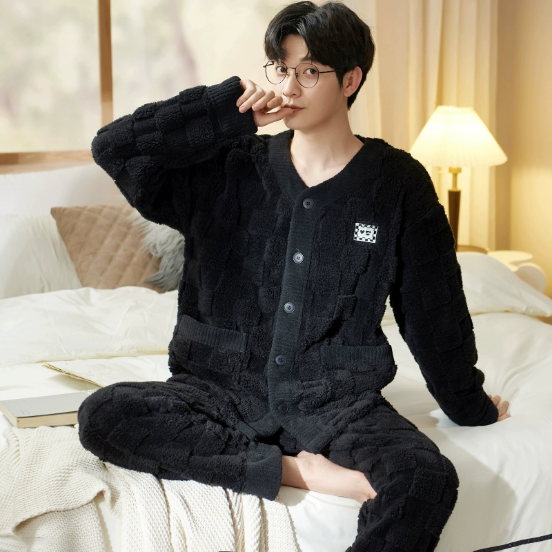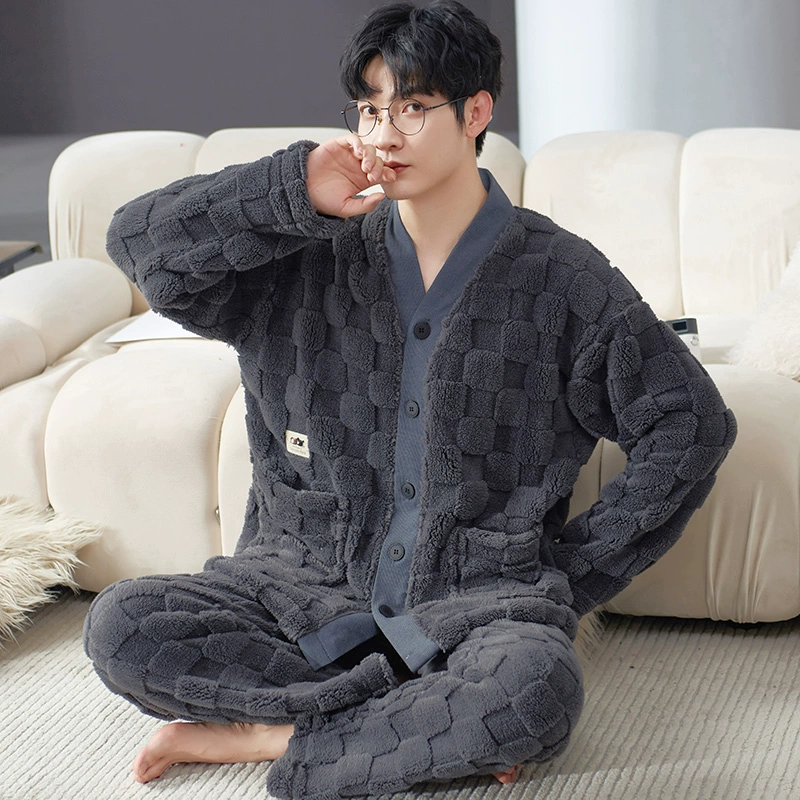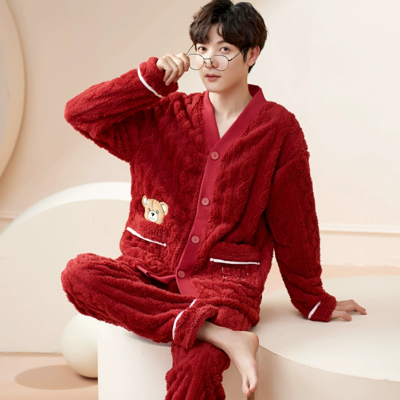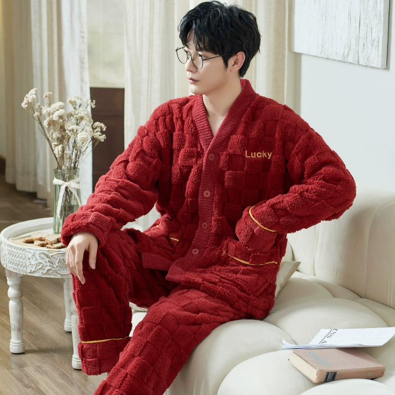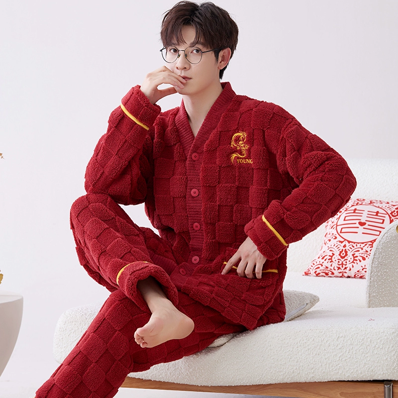 Pajamas for men, winter, men's coral velvet, thickened, autumn and winter, red, auspicious year, home wear, winter