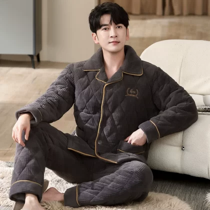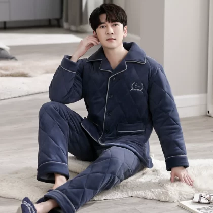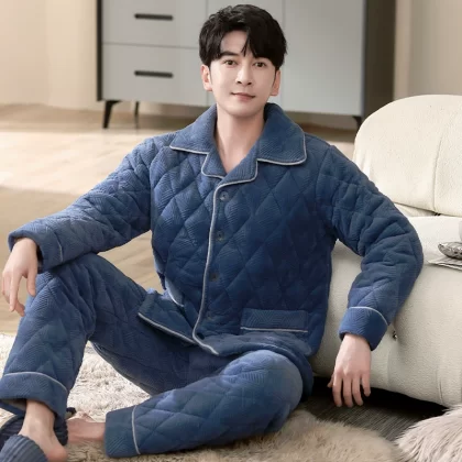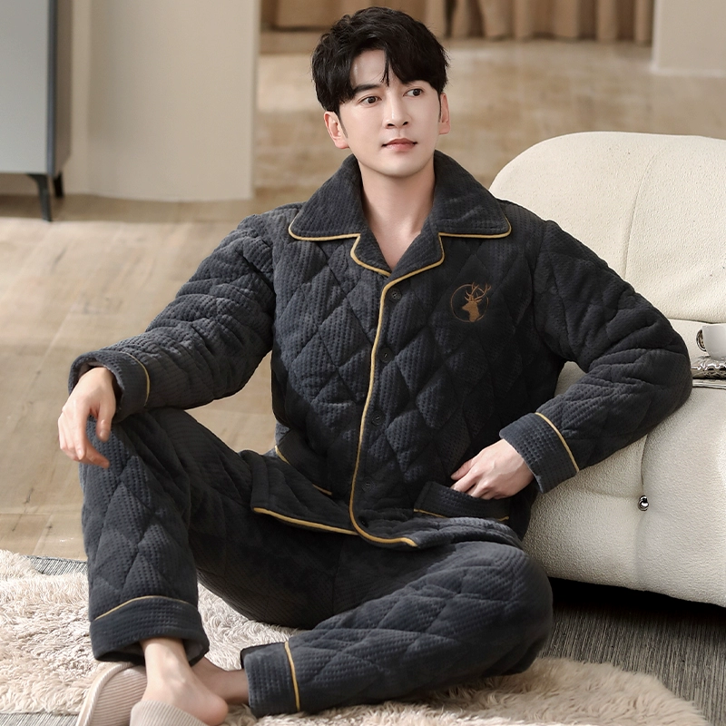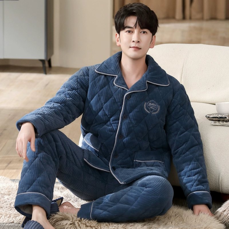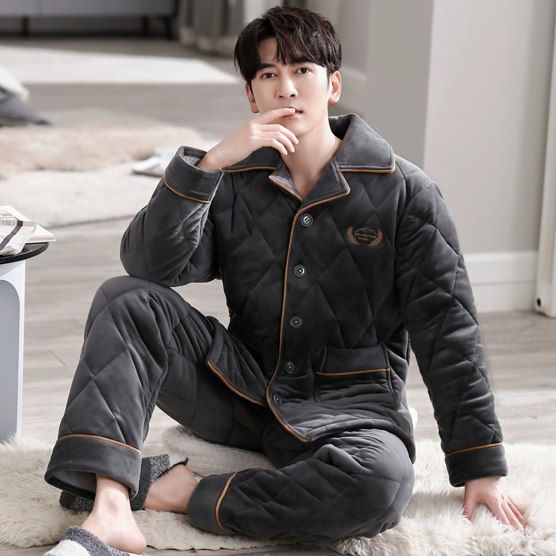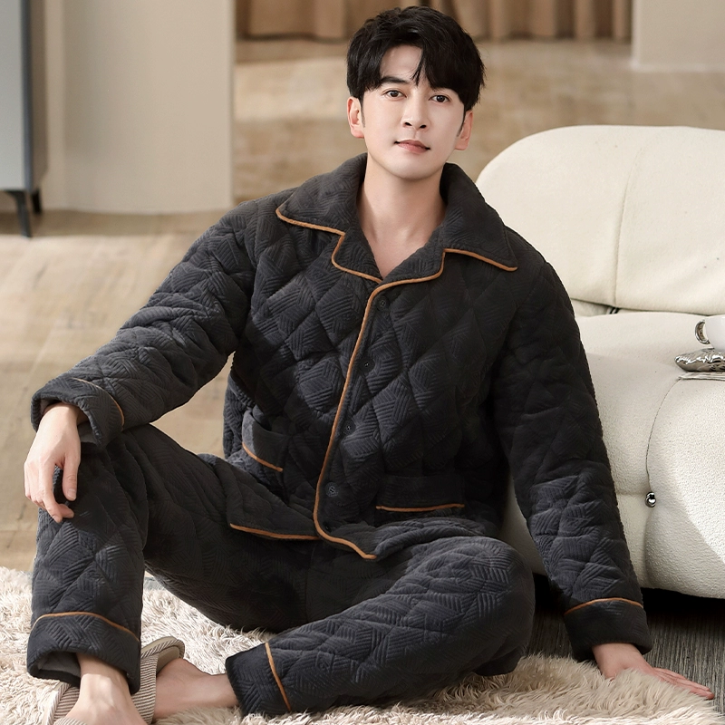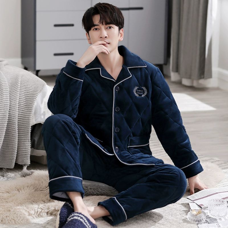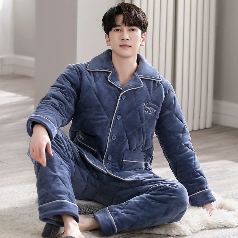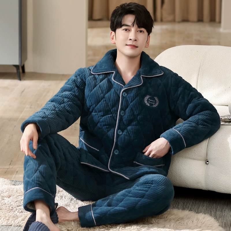 | nameOriginal | Pajamas for men winter thickened coral velvet three-layer quilted warm flannel home wear set plus size |