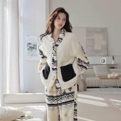 بيجامة للنساء 2023 خريف وشتاء جديد من المخمل المرجاني بالإضافة إلى نمط المشاهير على الإنترنت السميك من القطيفة يمكن ارتداؤها خارج المنزل مجموعة ملابس