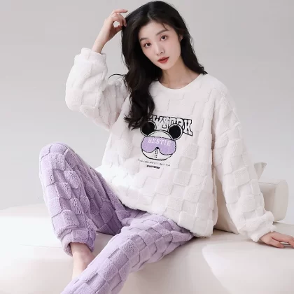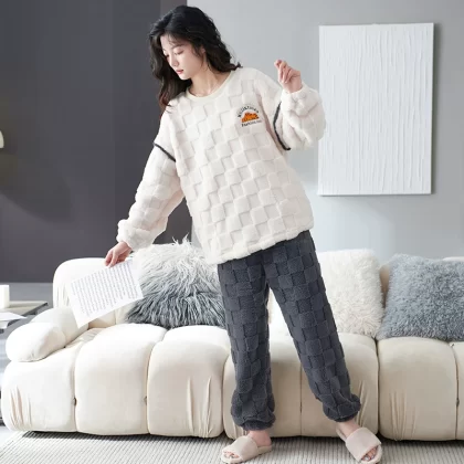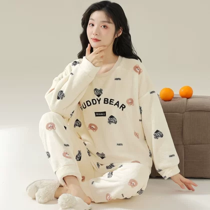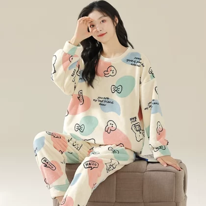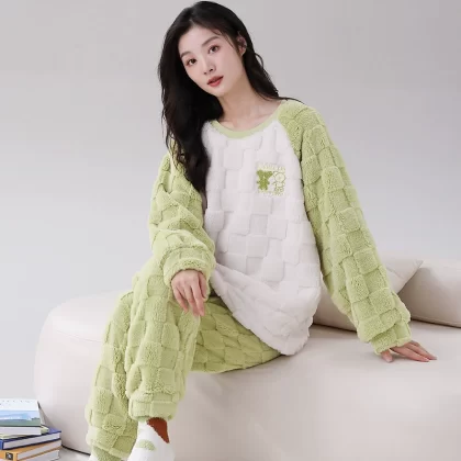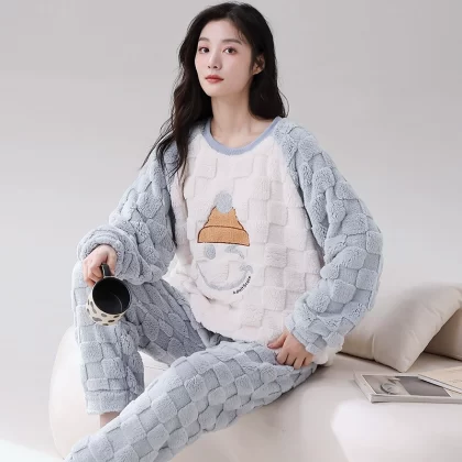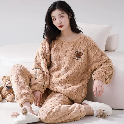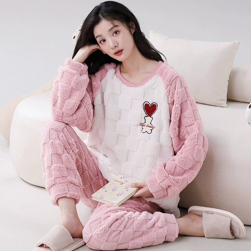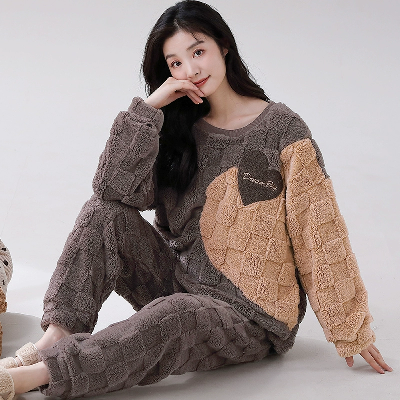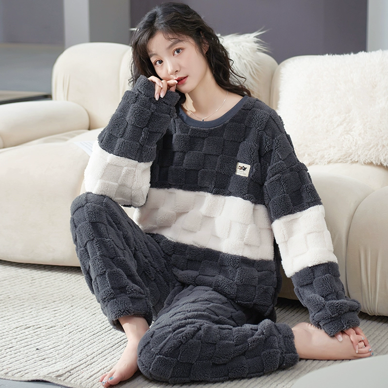| nameOriginal | Pajamas for women autumn and winter coral velvet plus velvet thickened flannel autumn and winter women's color block home clothes winter |