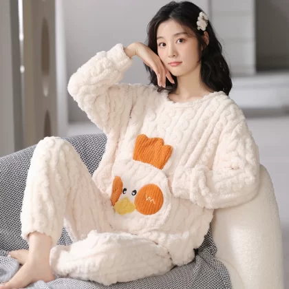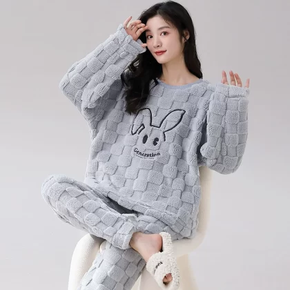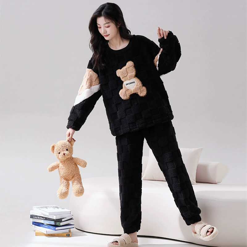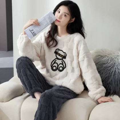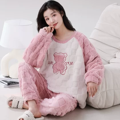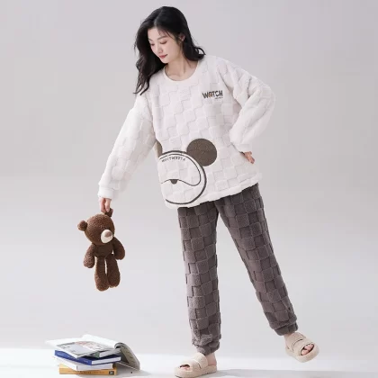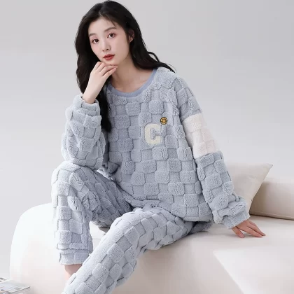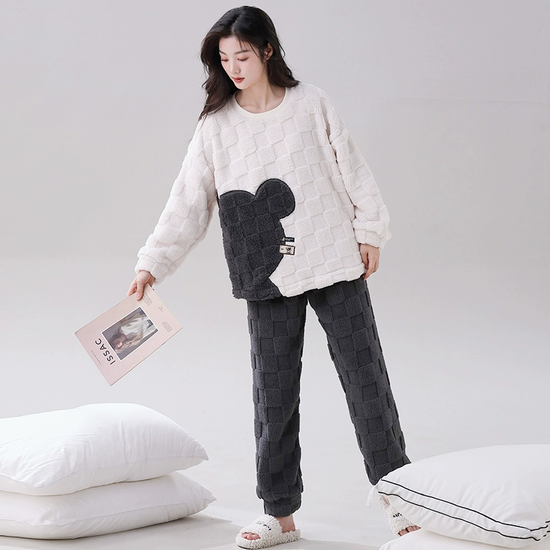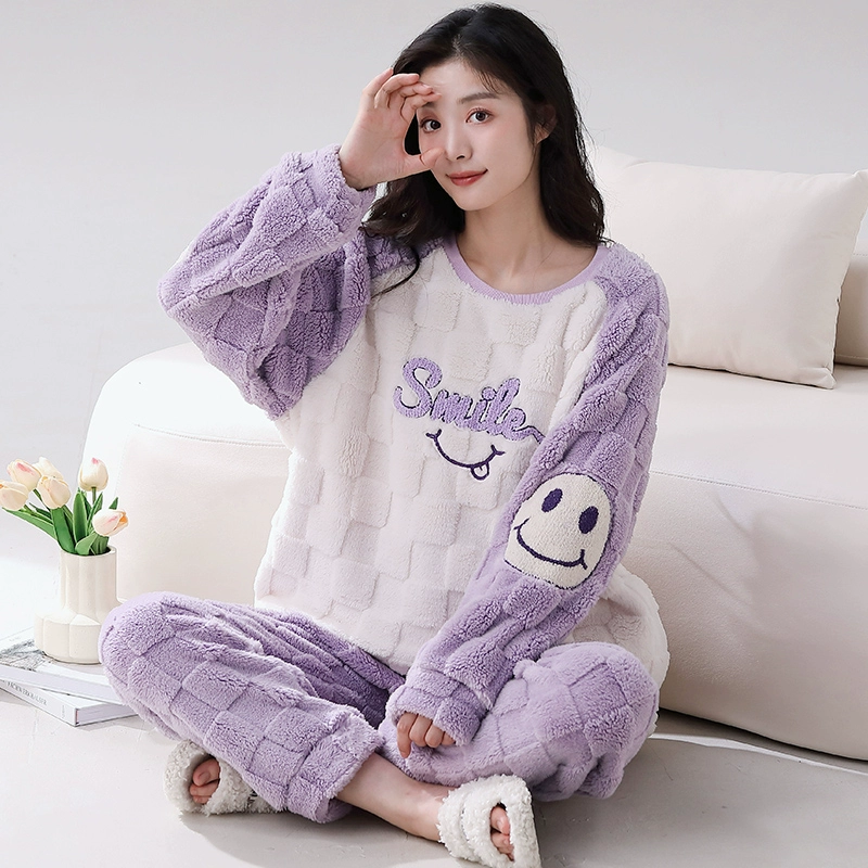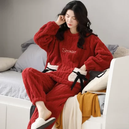 | nameOriginal | Pajamas for women autumn and winter coral velvet plus velvet thickened flannel autumn and winter women's color block home clothes winter |