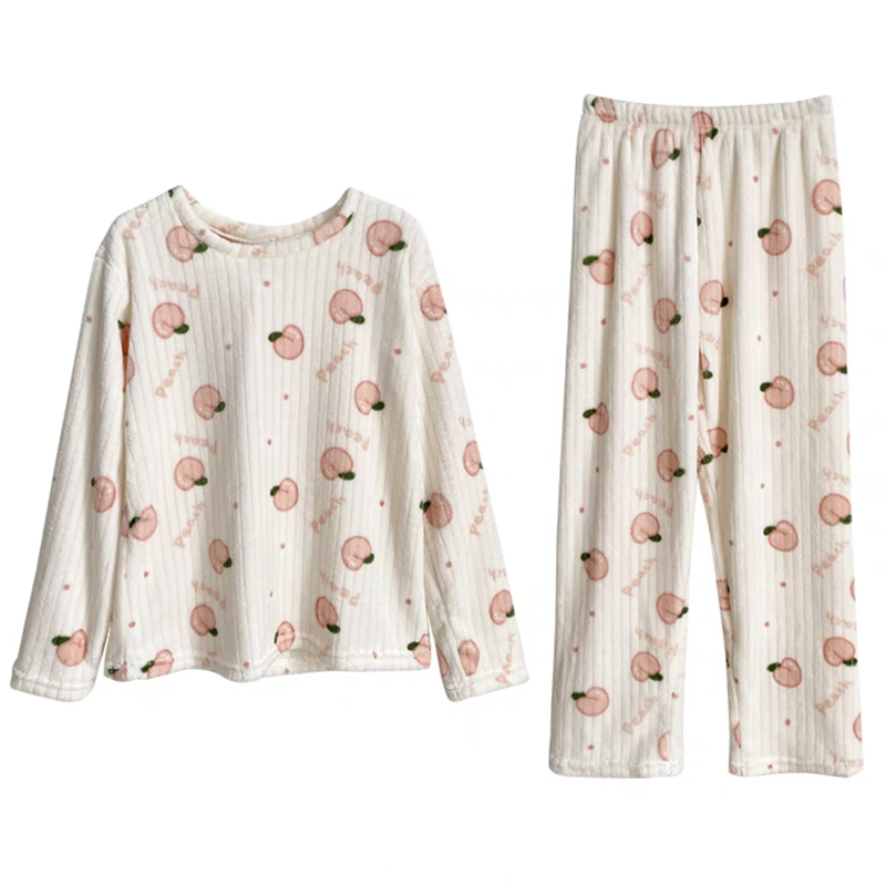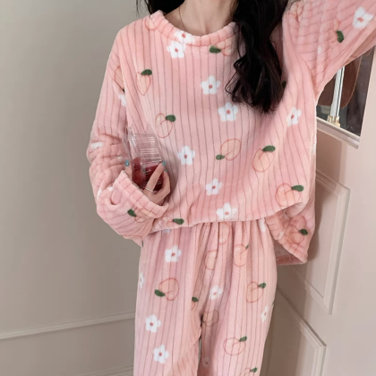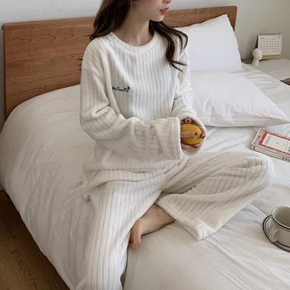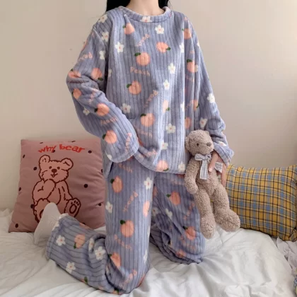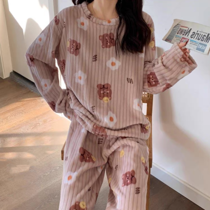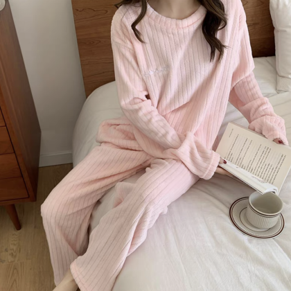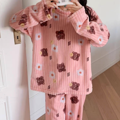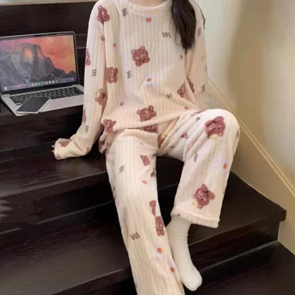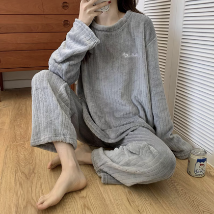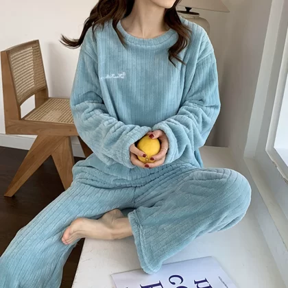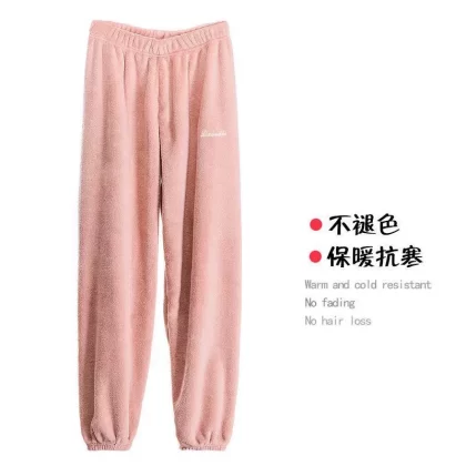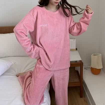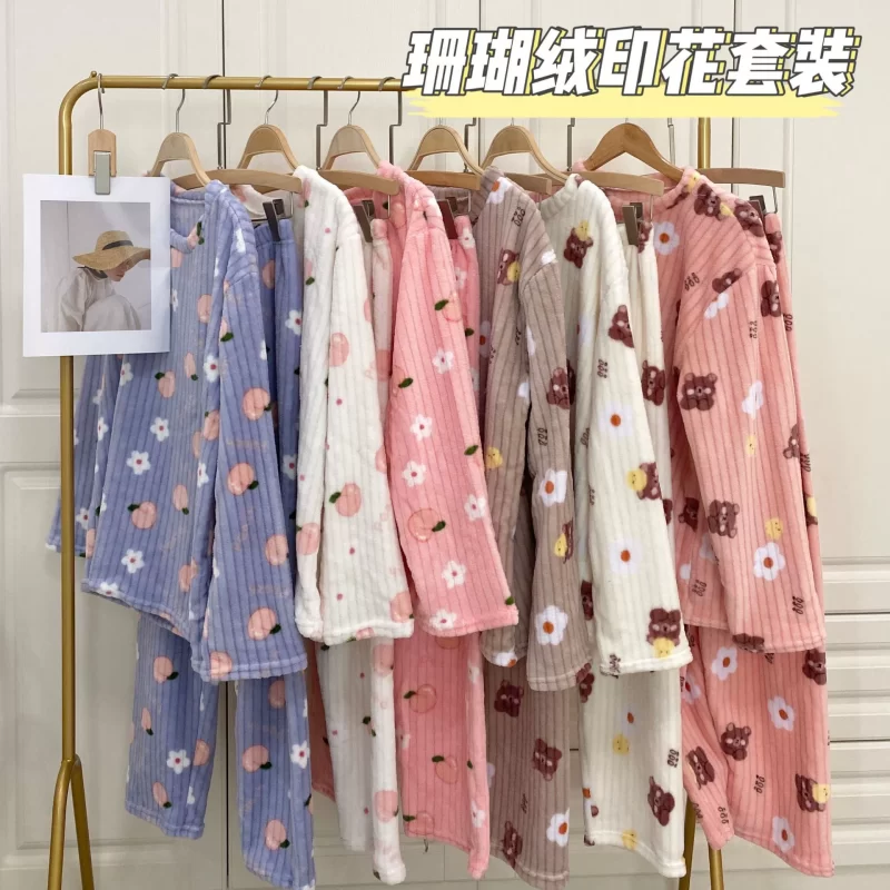 nameOriginal | Pajamas for women in autumn and winter, thickened velvet, warm long-sleeved coral velvet two-piece set, loose wide-leg pants, home wear set |