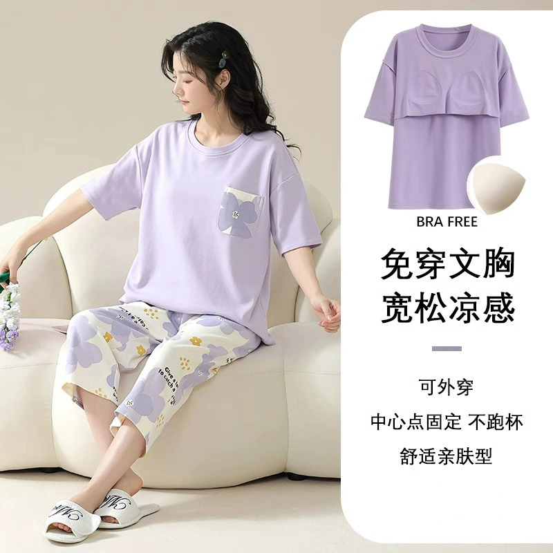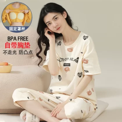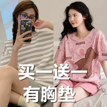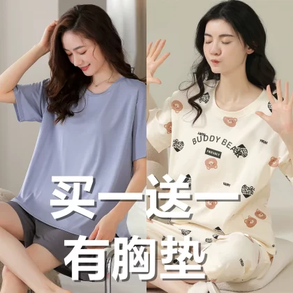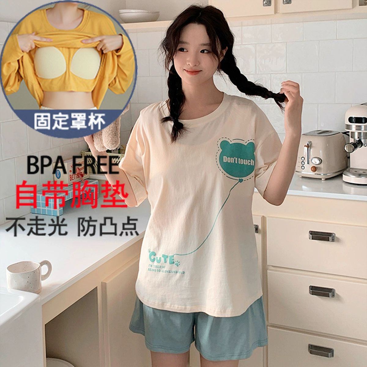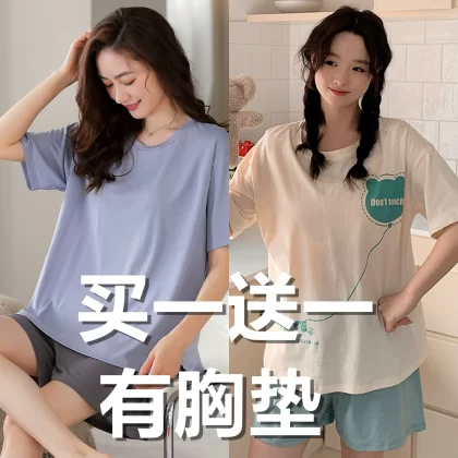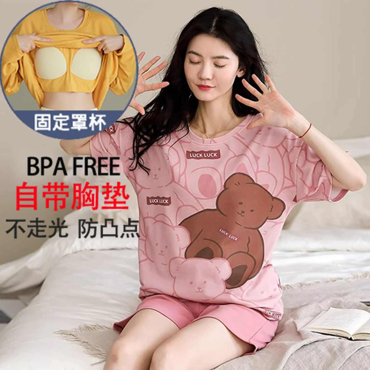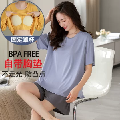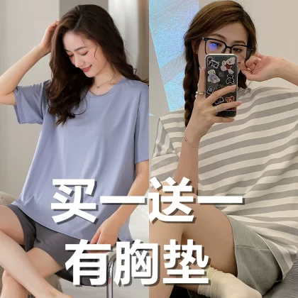 | nameOriginal | Pajamas for women in the summer with built-in breast pads, modal thin short-sleeved shorts set, can be worn outside as home clothes |