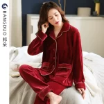 بيجامات للنساء ربيع وخريف كورال المخملية الخريف والشتاء السميكة المخملية الحمر