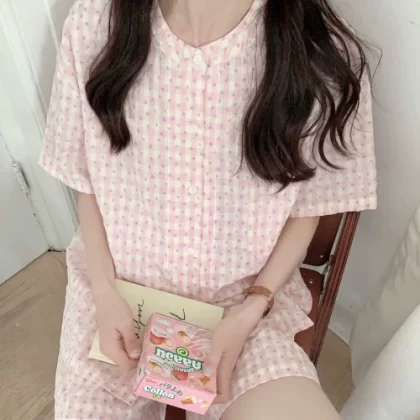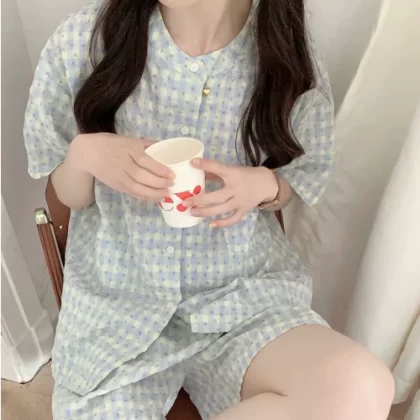 | nameOriginal | Pajamas for women summer short-sleeved shorts Korean style simple casual plaid floral bubble cloth home wear two-piece suit |