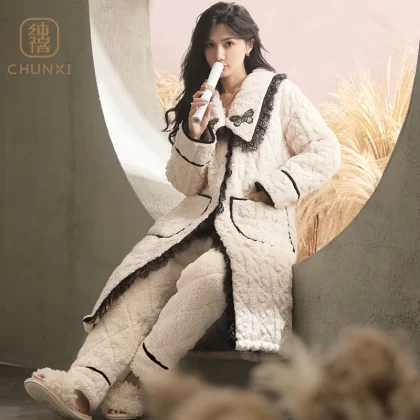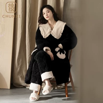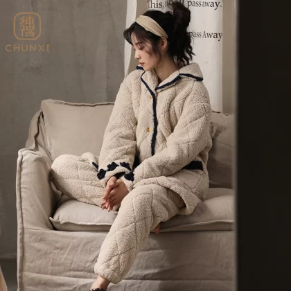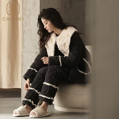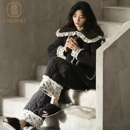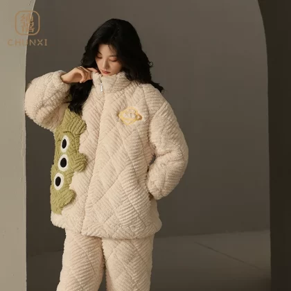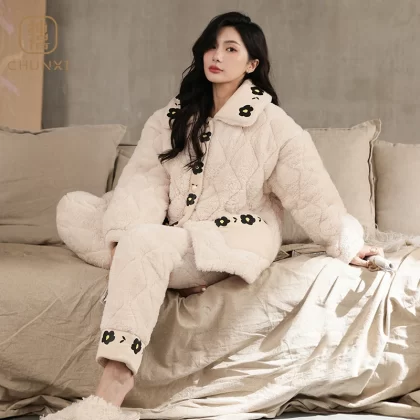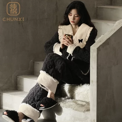 | nameOriginal | Pajamas for women winter coral velvet 2024 new three-layer thickened plus velvet quilted home wear flannel two-piece set |