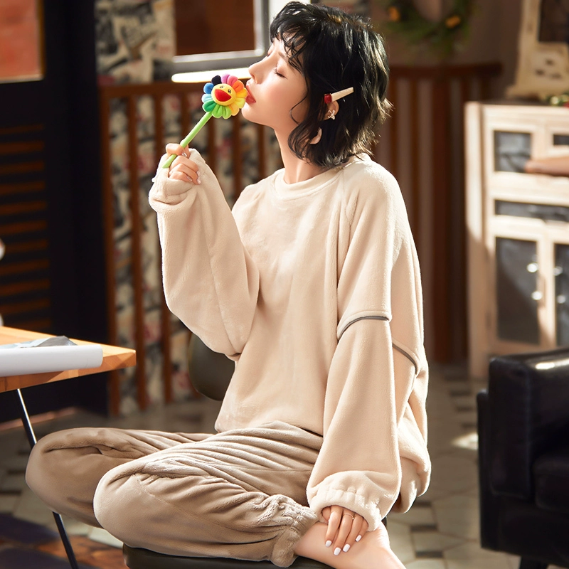 | nameOriginal | Pajamas for women winter coral velvet thickened flannel home clothes set can be worn outside student dormitory autumn and winter style |