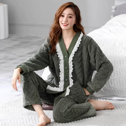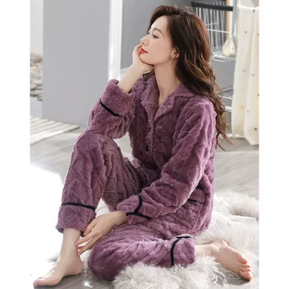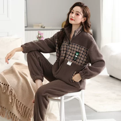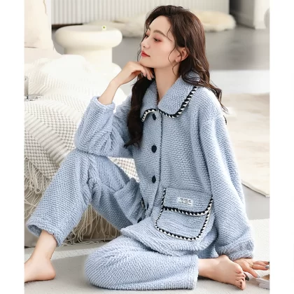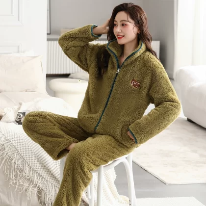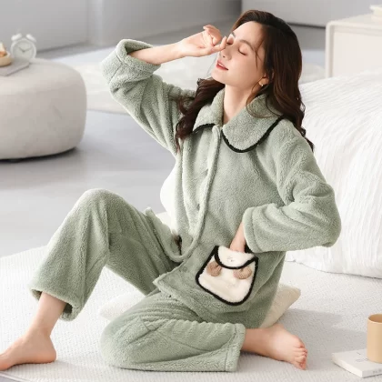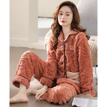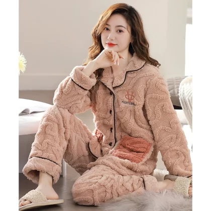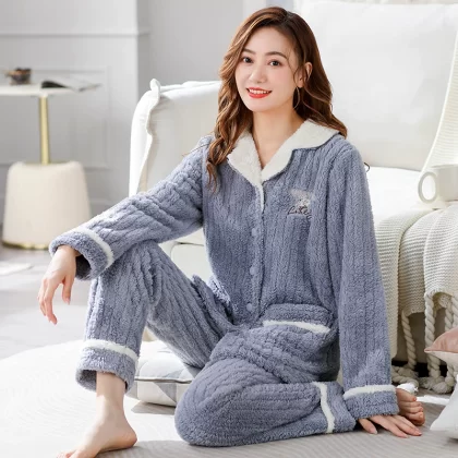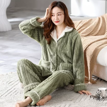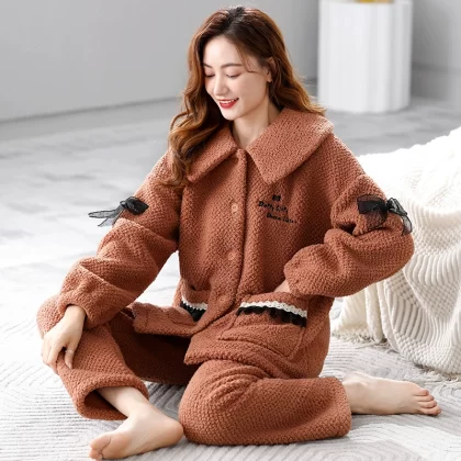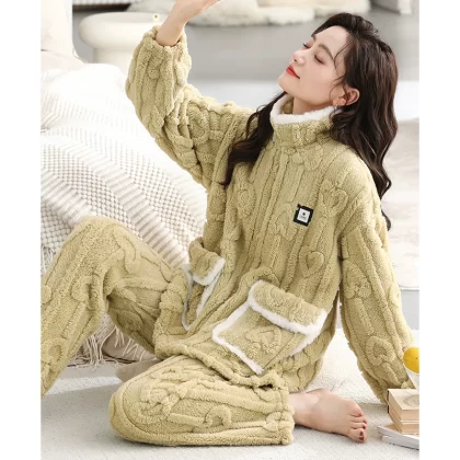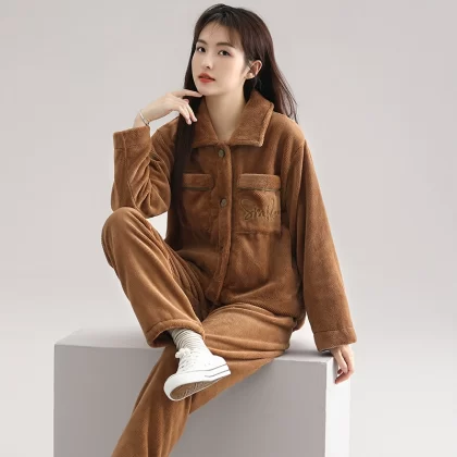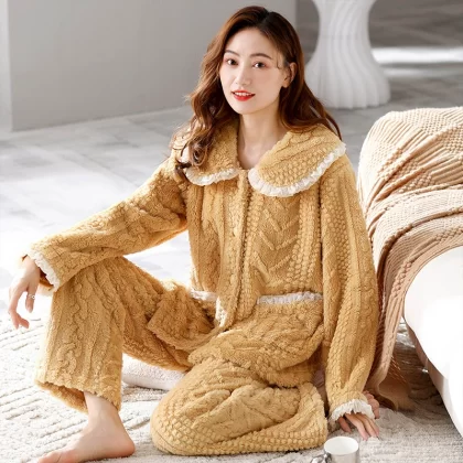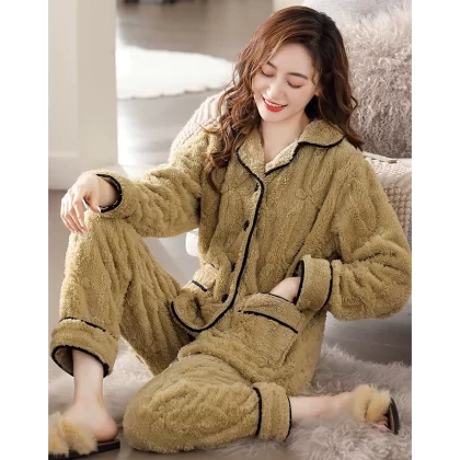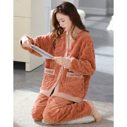 Pajamas for women winter coral velvet thickened plus velvet to keep warm 2024 new autumn and winter flannel large size home clothes