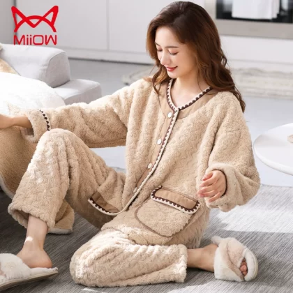 | nameOriginal | Pajamas for women winter coral velvet thickened women's autumn and winter flannel warm women's winter home wear set |
