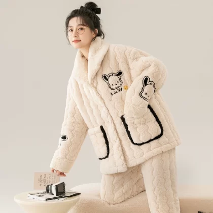 | nameOriginal | Pajamas for women winter coral velvet warm thickened plus velvet three-layer quilted suit winter flannel plus size home clothes |