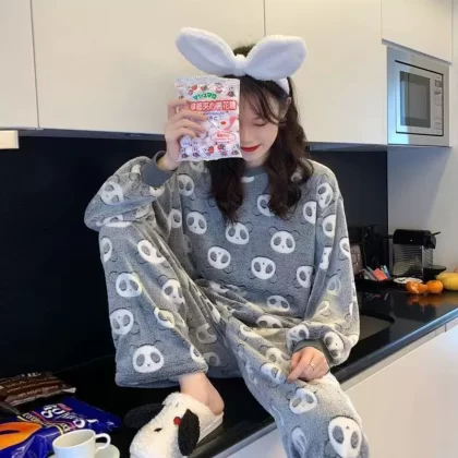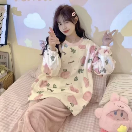 | nameOriginal | Pajamas for women winter flannel Korean style long-sleeved thickened velvet coral velvet cute autumn and winter home wear set for women |