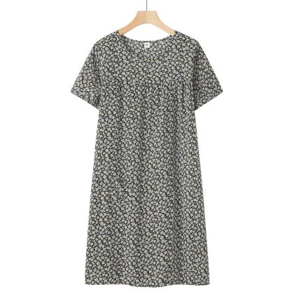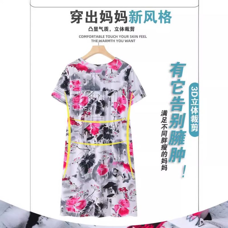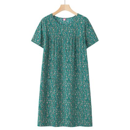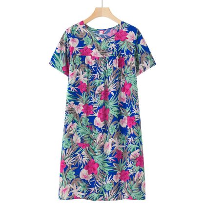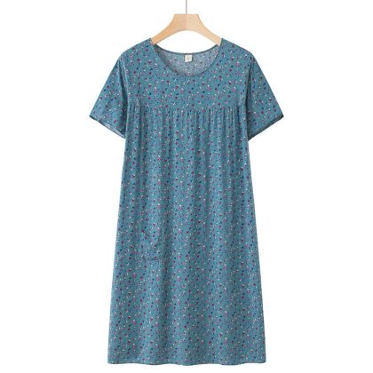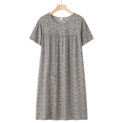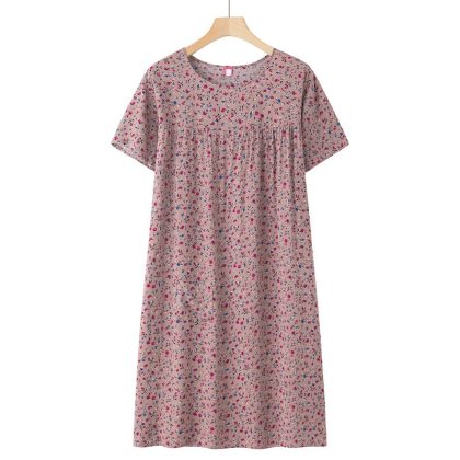 nameOriginal | Pajamas Summer Thin Mother Loose Artificial Cotton dress Summer Women's Short-sleeved Nightgown |