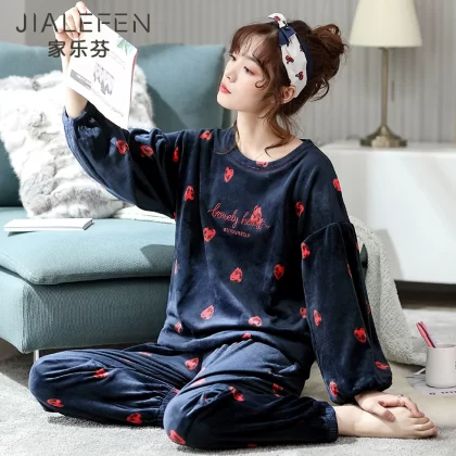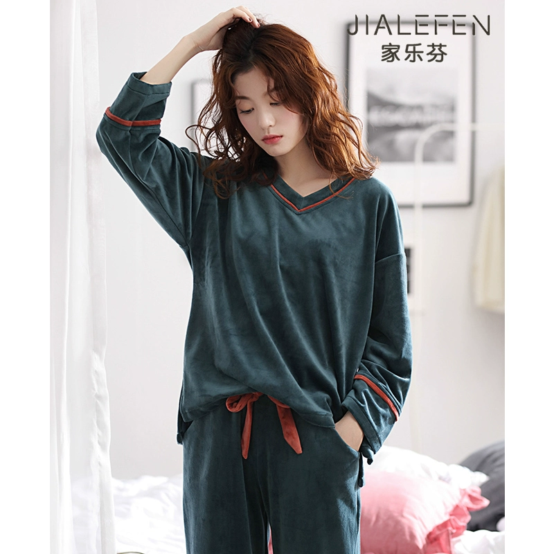 Pajamas women's autumn and winter home clothes flannel coral velvet plus velvet warm and thickened spring and autumn thin island velvet