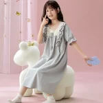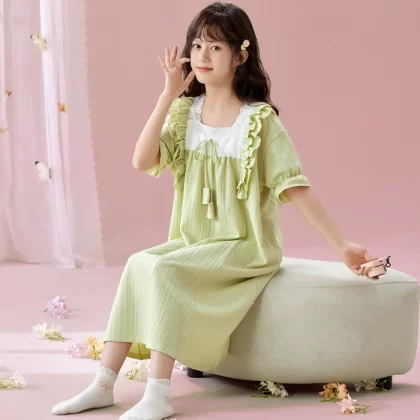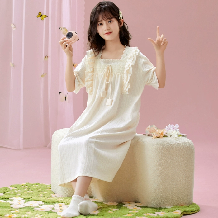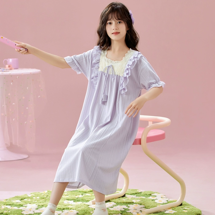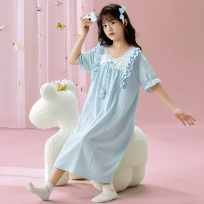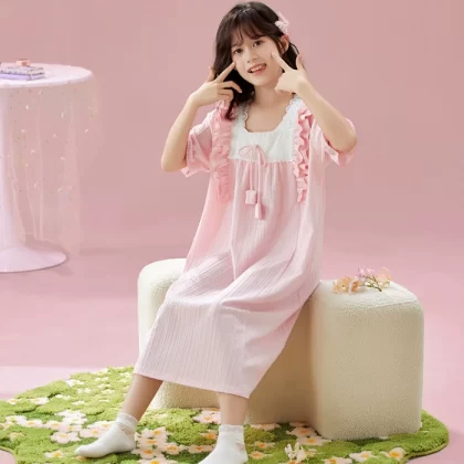 | nameOriginal | Palace style solid color lace parent-child wear home wear nightgown |