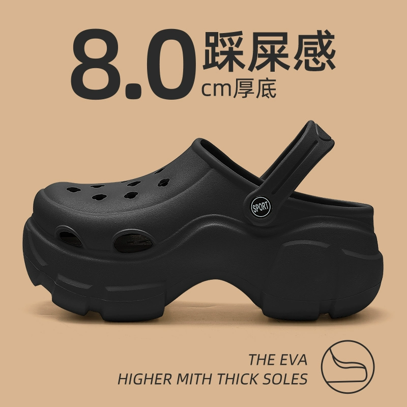 | nameOriginal | Pancake-like thick-soled high-heeled two-hole Crocs |