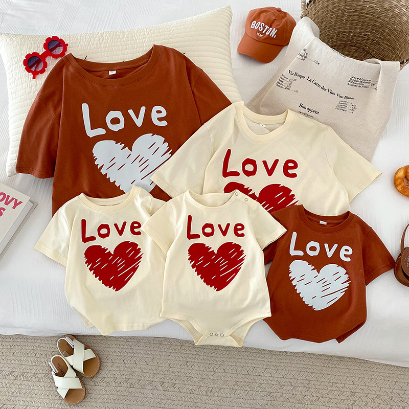 | nameOriginal | Parent-child 2024 summer new family of three four love short sleeve t-shirt foreign-style mother and daughter baby photo |