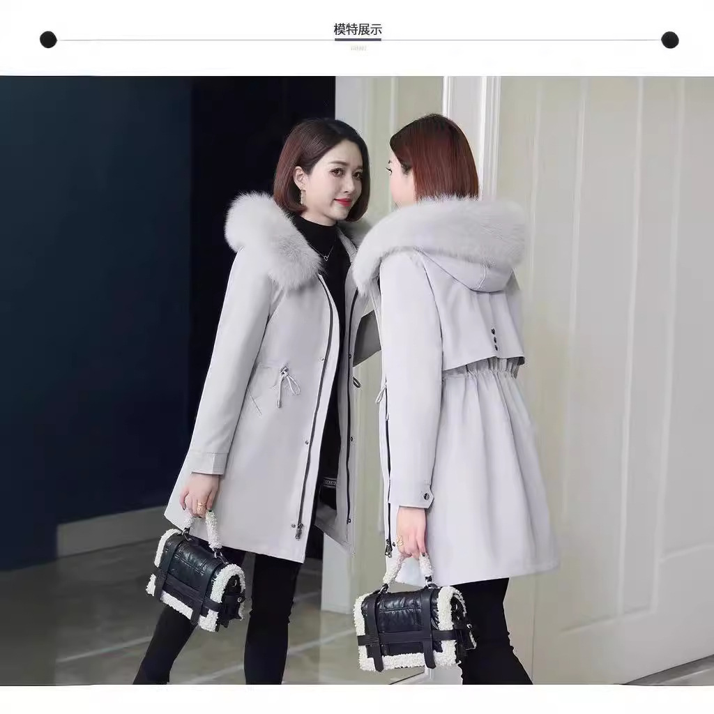 Parker Clothing Women's 2024 New Mid-length Detachable Rex Rabbit Fur Liner Fox Fur Mama Women's Fur Coat