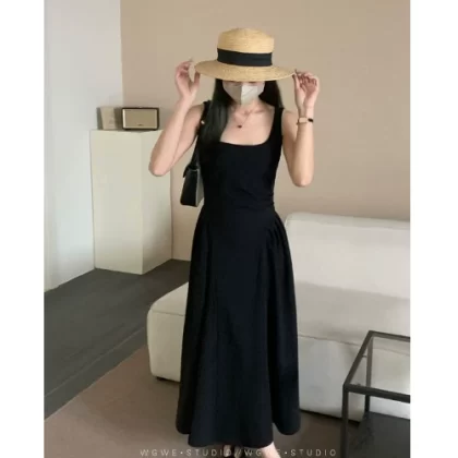 فستان ميدي بنمط هيبورن باللون الأسود الخوخي