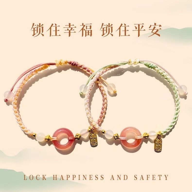 | nameOriginal | Peach blossom safety buckle couple bracelet female light luxury niche woven bracelet 2024 new girlfriends bracelet |
