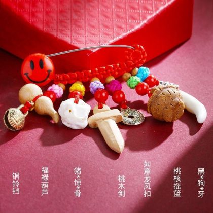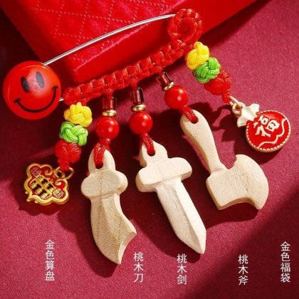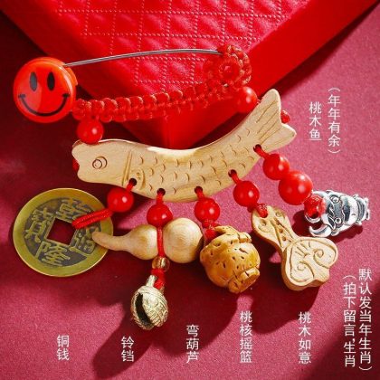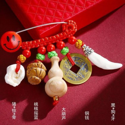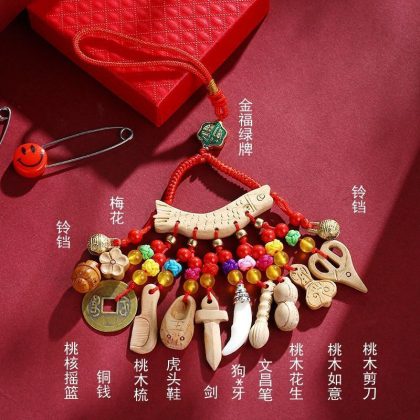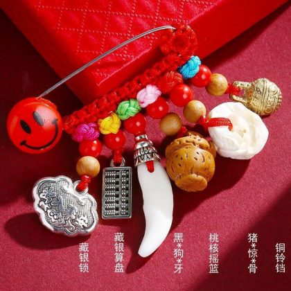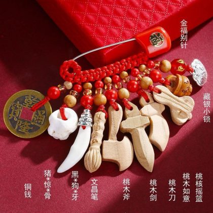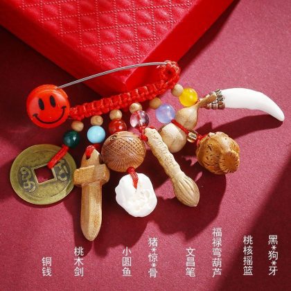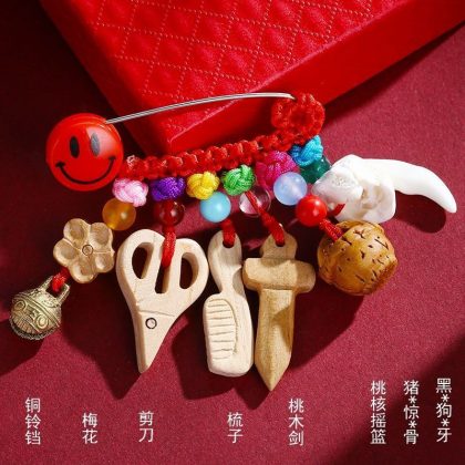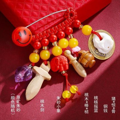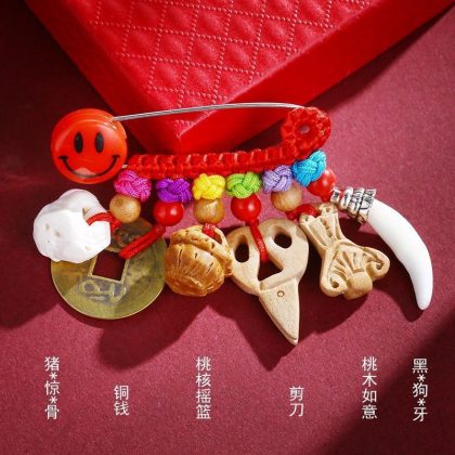 | nameOriginal | Peach wood pendant baby pin pig bone dog tooth peach branch pregnant women cinnabar baby go out brooch |