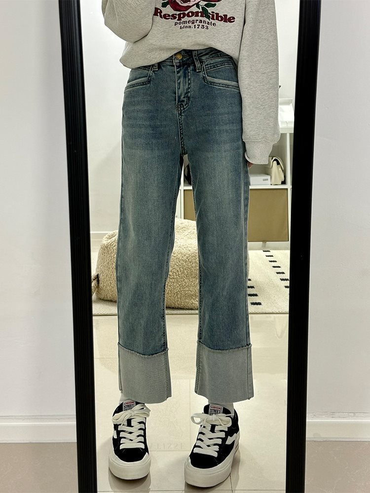 | nameOriginal | Pear Shape Figure Design Sense Straight Jeans Women's Autumn chubby girl plus size High Waist Slimming Stretch Cigarette Pants |