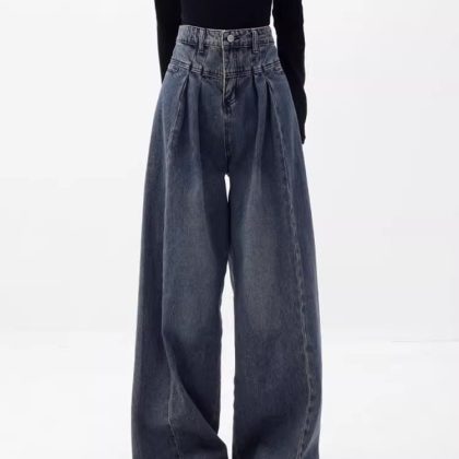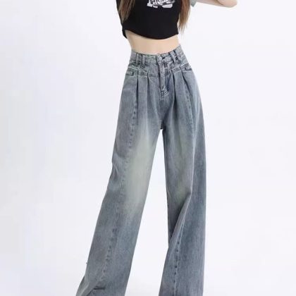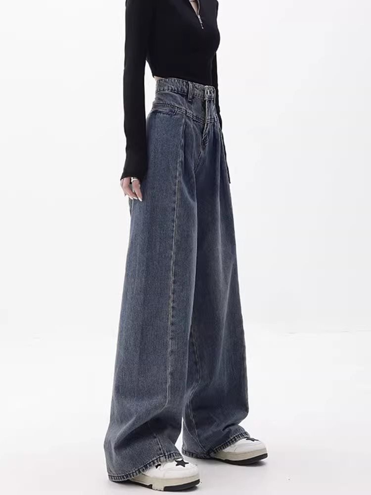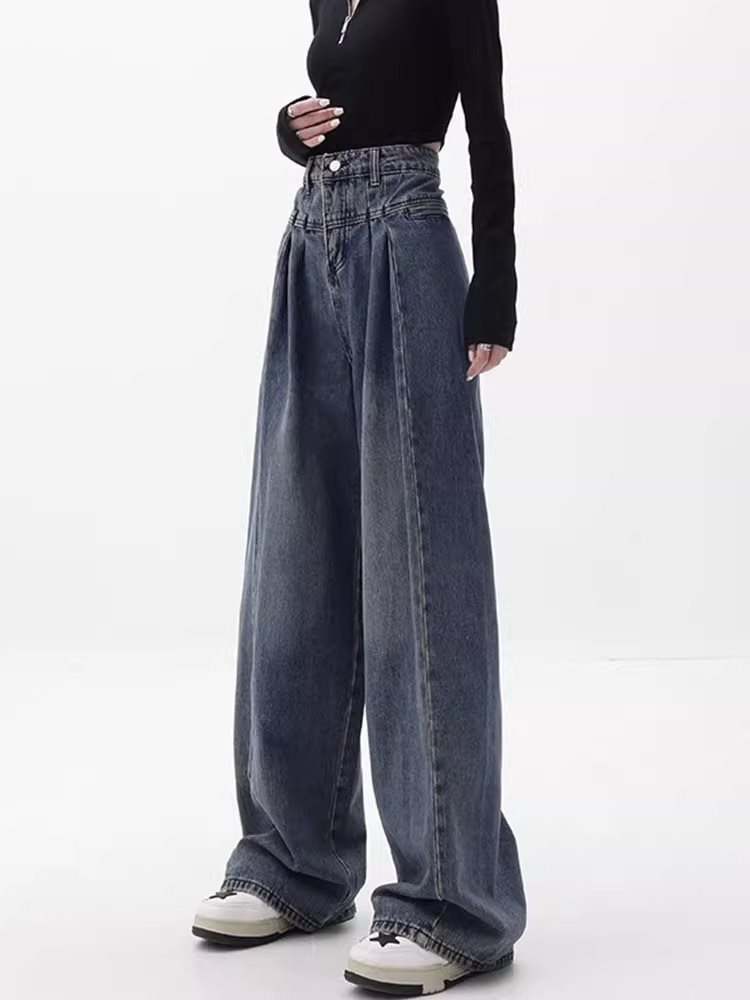| nameOriginal | Pear-Shaped Straight-Leg Jeans Women's Spring High-Waist Hip-Covering Design Retro plus size chubby girl Wide-Leg Pants |