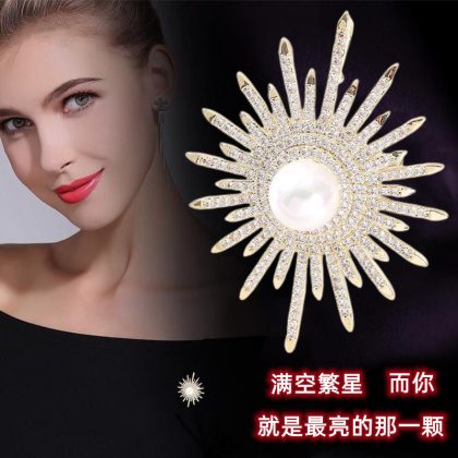 | nameOriginal | Pearl brooch women's suit corsage sunflower pin full diamond scarf buckle anti-exposure buckle fixed clothes pin |