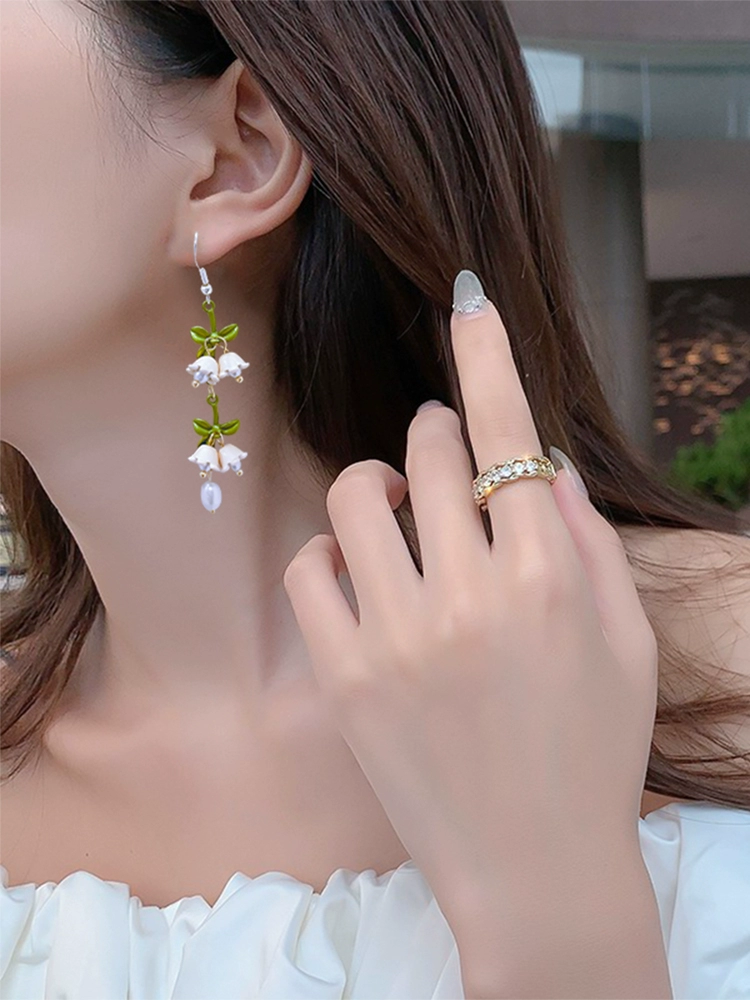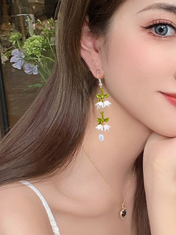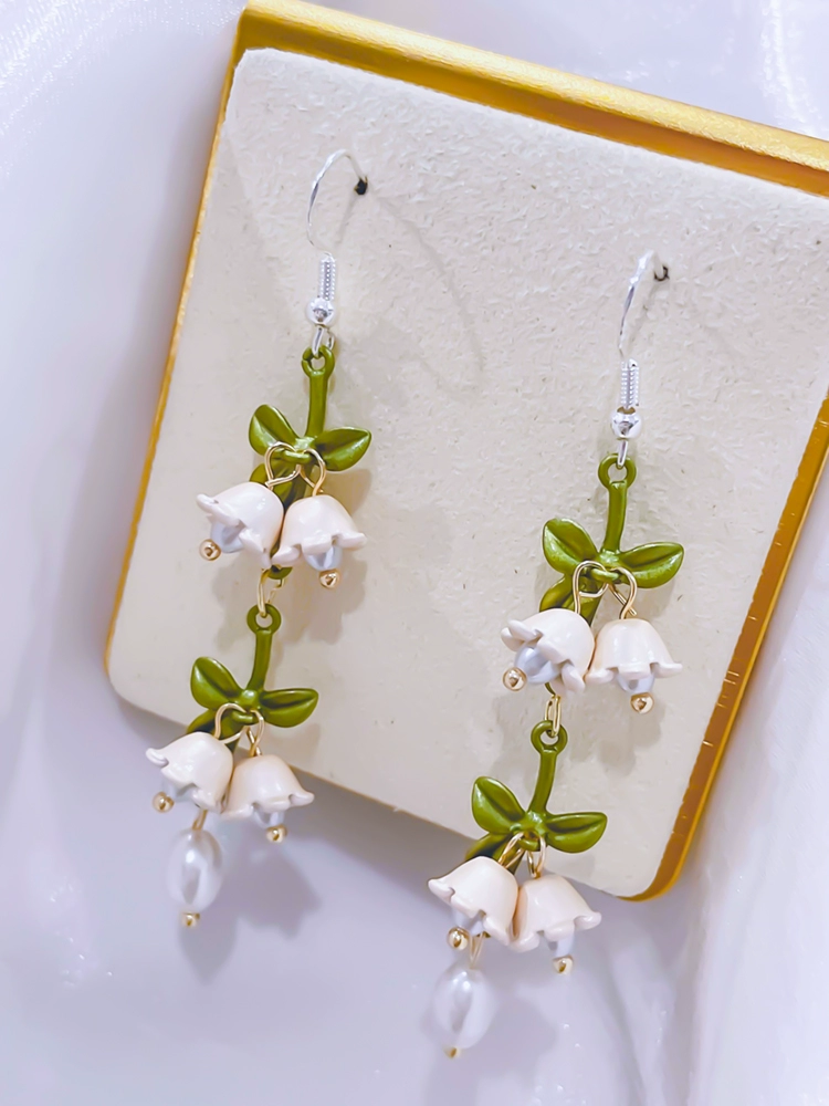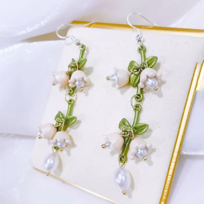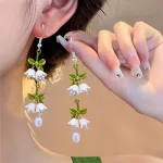 | nameOriginal | Pearlescent jasper lily of the valley flower green leaf earrings for women 2024 new trendy earrings fairy temperament high-end earrings |