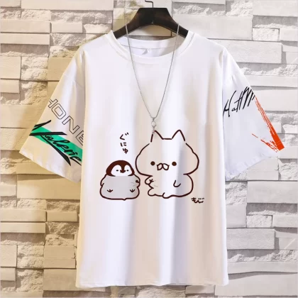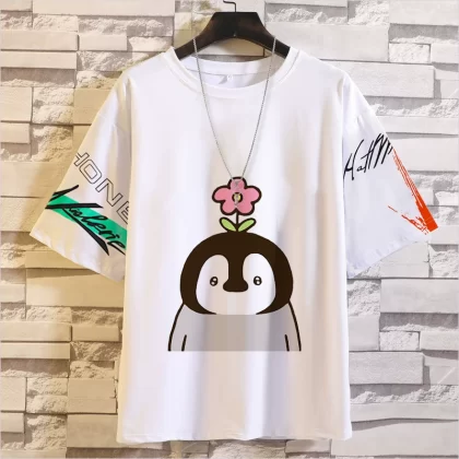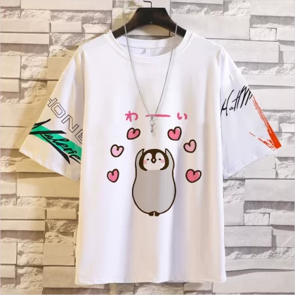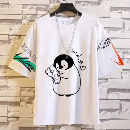 Penguin خمس نقاط الأكمام الرموز التعبيرية أعلى تي شيرت اليابانية