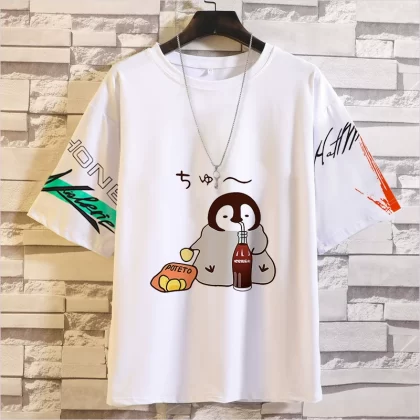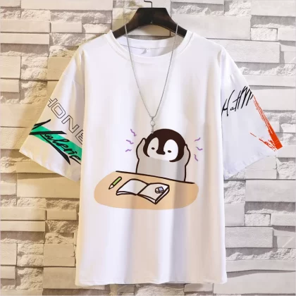 Penguin five-point sleeve student expression pack Japanese T-shirt