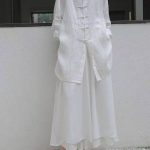 Performance clothes women's Zen buckle loose shirt hanfu style white shirt Women's Mid-length
