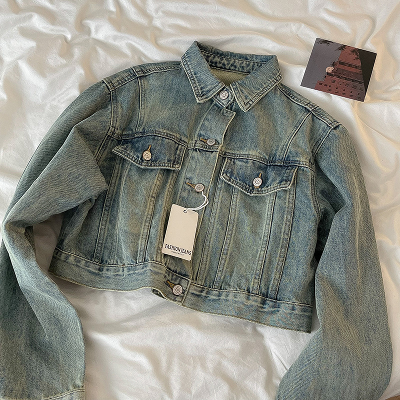 | nameOriginal | Personalized Washed Vintage Blue Denim Long-sleeved Short Coat 2024 Spring New Women's Short Laps Top Trendy |