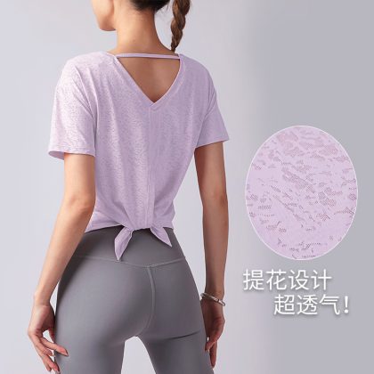 | nameOriginal | Pilates Training Clothing Summer Lightweight Sports Fitness Clothing Jacquard Slit Blouse Women's Short-sleeved Breathable Yoga Clothing Top |