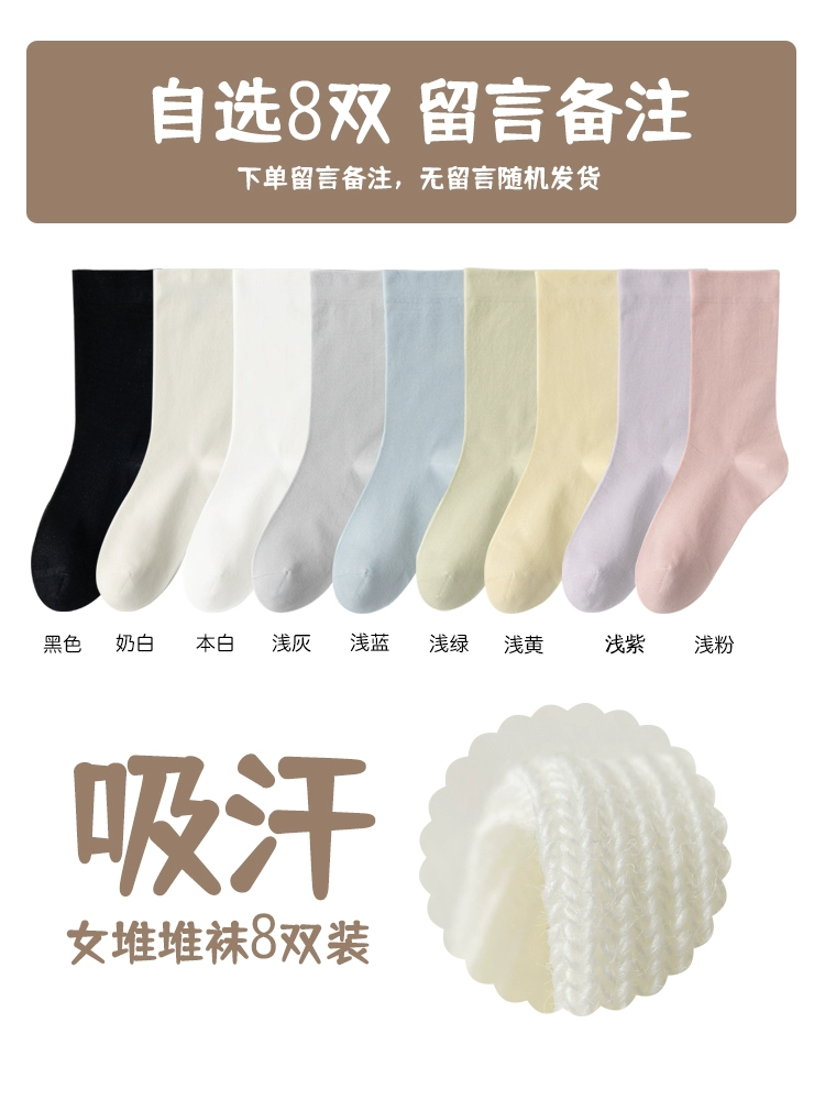 Pile socks women's mid-calf socks autumn and winter pure cotton bottom boneless black and white socks warm Japanese versatile ins trendy stockings