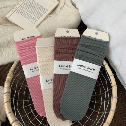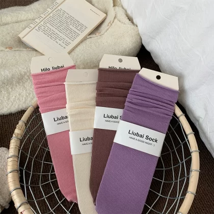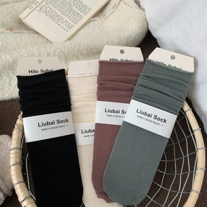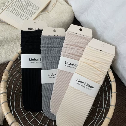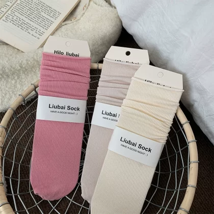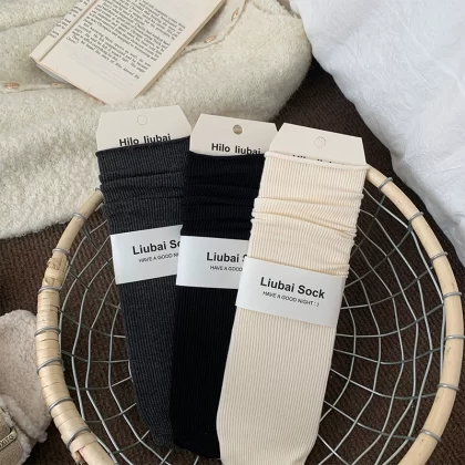 | nameOriginal | Pile socks women's spring and summer thin pure cotton Japanese style solid color Korean ins trend curling summer season long mid-calf socks |