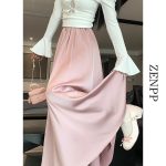 | nameOriginal | Pink Acetate Satin Pleated Skirt Women's Summer A- line Long Skirt to Ankle Draped Skirt Large Umbrella Skirt |