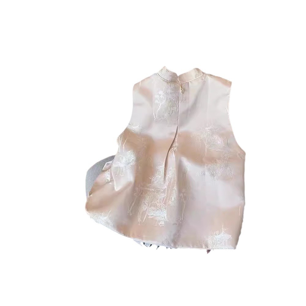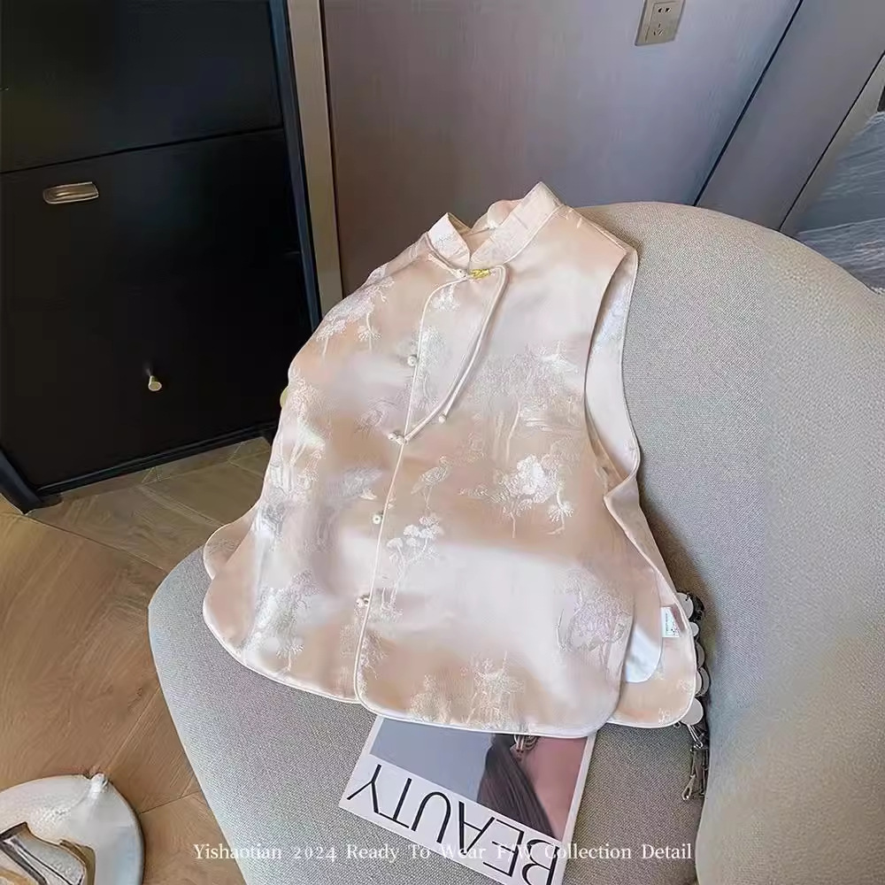 | nameOriginal | Pink buckle stand collar Crane National style Vest Women's sleeveless waistcoat jacquard vest Song Jin Chinese style top spring |