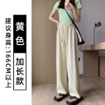 Pink chiffon thin high waist suit ice silk wide leg pants