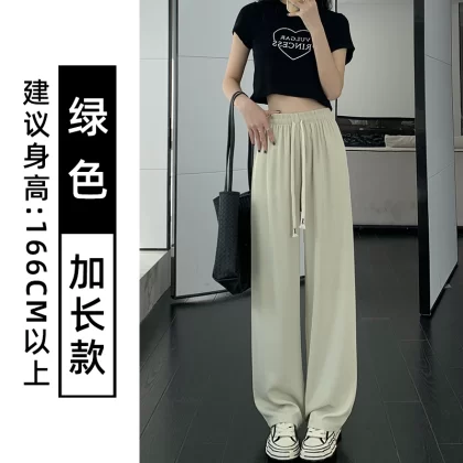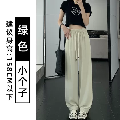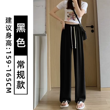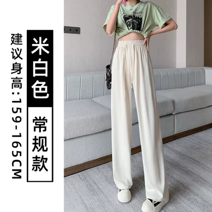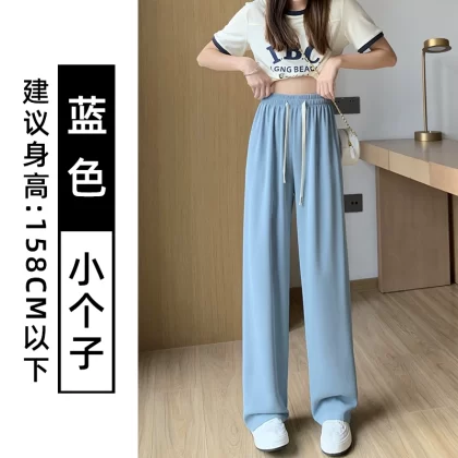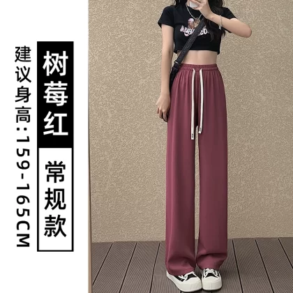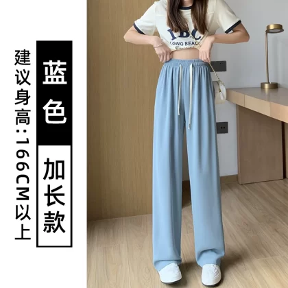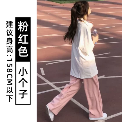 Pink chiffon thin high waist suit ice silk wide leg pants