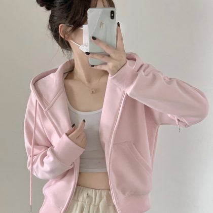 Pink Early Spring Zipper Short Sweatshirt Coat Women's Spring and Autumn 2024 New Early Spring Small Spring Top