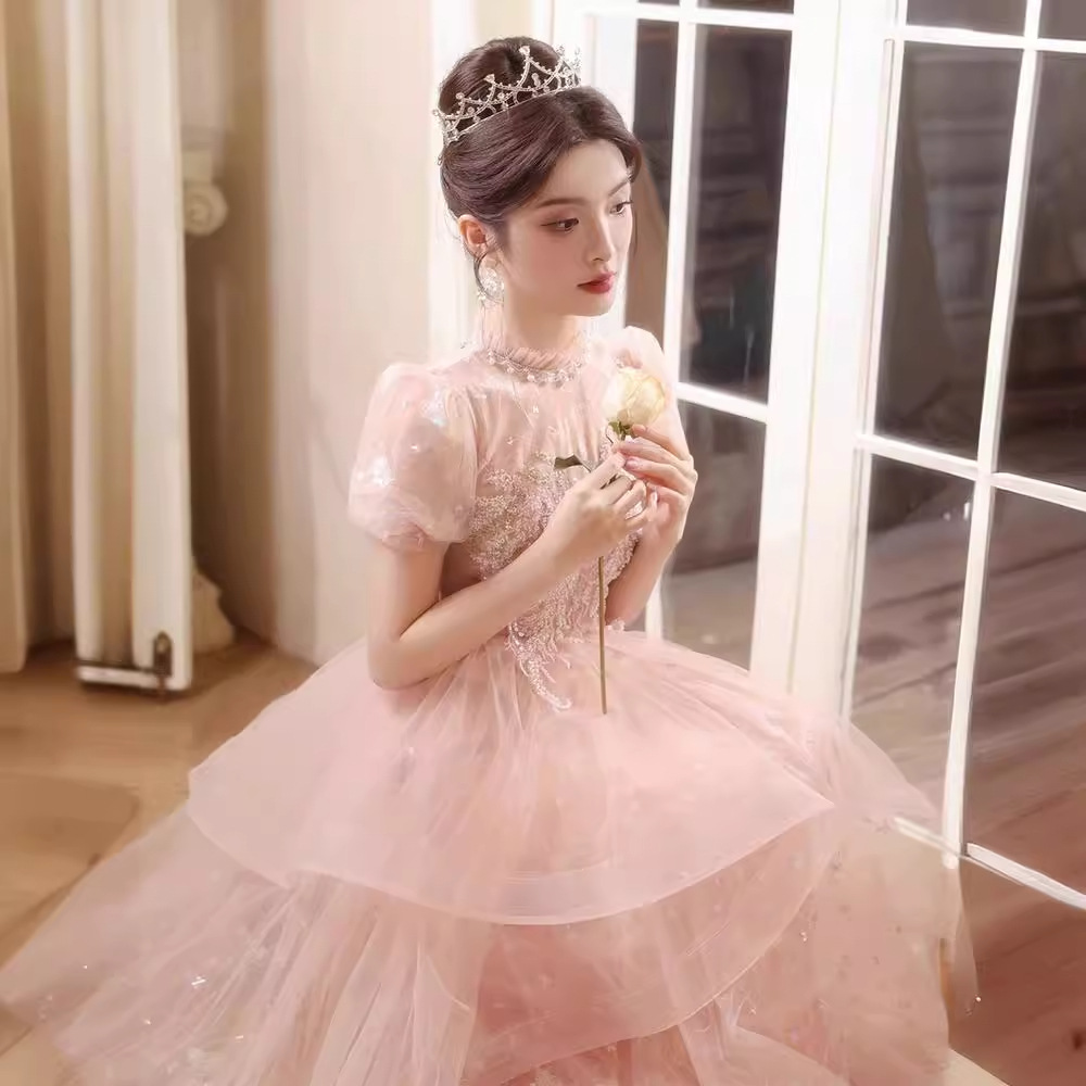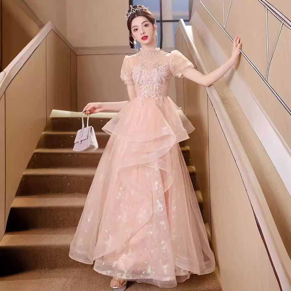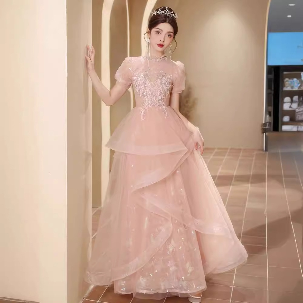 Pink Evening Dress High-end Feeling Banquet Elegant High-end Light Luxury Niche Host Fairy Princess Dress Adult Ceremony