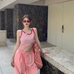 | nameOriginal | Pink letter print slim fit hottie sleeveless suspender belt |